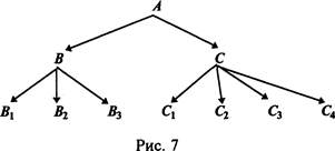 Научные классификации представляют собой многоуровневое и разветвленное деление исходного объема понятия, в результате которого возникают соподчиненные ему понятия. Так, например, если исходное понятие назвать родовым, то с помощью операции деления его объема появляются видовые понятия, дальнейшее деление приводит к возникновению подвидовых и тому подобных понятий. Примером такой классификации может служить классификация, впервые предложенная К. Линнеем, в которой растения распределялись по принципу общности и существенности их признаков. Если в качестве исходного взять тип позвоночных животных, то он делится на класс рыб, земноводных, пресмыкающихся, птиц и млекопитающих, которые в свою очередь делятся на соответствующие подклассы, последние – на семейства, семейства – на отряды, а они, в свою очередь – на роды и виды. В итоге получается многоуровневое разделение исходного понятия на соподчиненные ему понятия, которое можно представить графически в виде разветвленного дерева (рис.7).