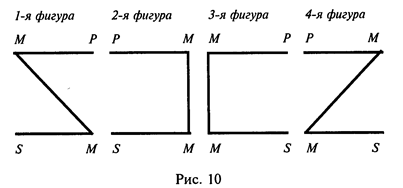 Запомнить эти фигуры силлогизма легко с помощью наглядных схем (рис. 10), большая посылка в них изображается линией сверху, а меньшая – снизу.