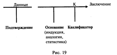 В качестве основания для перехода от имеющихся данных к заключению обычно используются такие логические принципы, как индукция, аналогия и статистика. Каждый из этих методов, как мы уже знаем, имеет свои особенности, но в то же время их объединяет то общее, что все они являются правдоподобными рассуждениями, заключения которых вероятны лишь в той или иной степени. Аргументация путем обобщения схематически представлена на рис. 19.