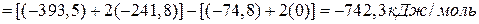 По закону Гесса: Тепловой эффект химической реакции зависит только от природы начальных и конечных продуктов и не зависит от числа промежуточных реакций перехода от одного состояния к другому.