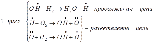 Типичным примером цепной разветвленной реакции является процесс окисления водорода (взрыв гремучего газа).