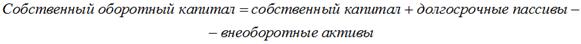 В.В. Ковалев[18]отмечает, что термин «собственные оборотные средства» - это аналог показателя чистого оборотного капитала в отечественной практике, а его расчет выполняется как разность между оборотными активами и текущим обязательствами.