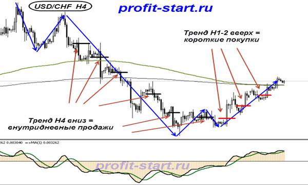 · И одно из главных: тренд всегда развивается в рамках какого-то другого старшего движения — тренда или флэта. Поэтому крайне важно смотреть куда идет старший тренд относительно текущего.