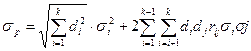 Риск портфеля определяется с помощью показателя стандартное отклонение, его значение для портфеля, содержащего k активов, может быть найдено по формуле: