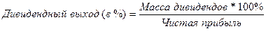 Главным аспектом ДП является показатель дивидендного выхода (DPR), который характеризует долю чистой прибыли, выплачиваемой наличными акционерам (в % или в относительном выражении)