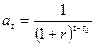 Период расчета может быть выражен в годах, кварталах, месяцах и т.д.; r -ставка дисконтирования, доли единицы.