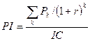 Индекс рентабельности инвестиций (PI) является следствием метода чистой текущей стоимости и рассчитывается как отношение чистой текущей стоимости денежного притока (Р) к чистой текущей стоимости денежного оттока (1С) (включая первоначальные инвестиции]: