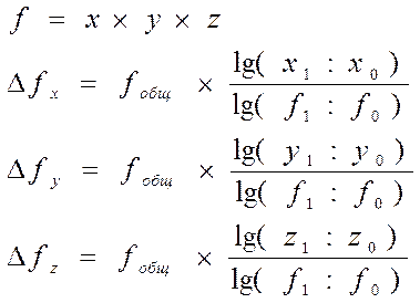 Т.о. использование интегрального метода не требует знание всего процесса интегрирования, достаточно в готовые рабочие формулы подставить числа. Логарифмирование применяется для изменения влияния факторов в мультипликативных моделях. Как и при интегрировании здесь результаты расчета не зависят от места расположения факторов. По сравнению с интегральным методом логарифмирование обеспечивает достаточно высокую точность и является одним из приемлемых методов определения влияния факторов. В отличие от интегрального метода при логарифмировании используется не абсолютные приросты показателей, а индексы их роста или снижения. Влияние этих факторов производится следующим образом: