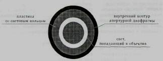 Фазовый конденсор в плоскости апертурной диафрагмы имеет пластину с прозрачным световым кольцом. Размер светового кольца, вернее его изображение, подбирается таким образом, чтобы оно соответствовало (или даже было чуть меньше) размеру фазового кольца объектива.
