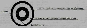 Фазовые объективы внутри имеют фазовый элемент (линза или пластина) с нанесенным кольцом, которое изменяет фазу и уменьшает амплитуду световой волны. Середина кольца в среднем составляет 1/2—2/3 от диаметра выходного зрачка объектива при этом светопропуска-ние кольца — 10—30% в зависимости от типа фазового контраста.