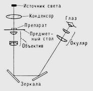 Методы освещения и наблюдения (микроскопия). Структуру препарата можно различить лишь тогда, когда разные его частицы по-разному поглощают или отражают свет либо отличаются одна от другой (или от окружающей среды) показателем преломления. Эти свойства обусловливают разницу амплитуд и фаз световых волн, прошедших через различные участки препарата, от чего, в свою очередь, зависит контрастность изображения. Поэтому методы наблюдения в М. выбираются (и обеспечиваются конструктивно) в зависимости от характера и свойств изучаемых объектов.