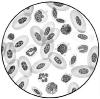 Кроме эритроцитов на препарате можно увидеть и лейкоциты, но в значительно меньшем количестве.