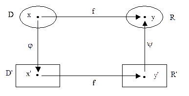 – выходным кодом y, интерпретирующим элемент из R' с помощью элемента из R.