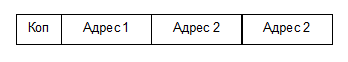 На рис.8 избражен формат трехадресной команды. Здесь Коп – код выполняемой операции, Адрес 1и Адрес 2 – адреса ячеек памяти, содержащих операнды команды. Например, в операции сложения операндами будут слагаемые. Адрес 3 – адрес ячейки памяти, в которую будет помещен результат операции.