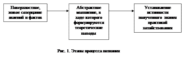Дальше начинается третий этап анализа. Ученому человеку надо сопоставить то, что он открыл в том же товаре, с практикой хозяйствования. Это необходимо для того, чтобы доказать истинность сформулированной им абстрактной теории. Если практика подтверждает выводы теории, то полученное знание становится истинным (рис. 1).