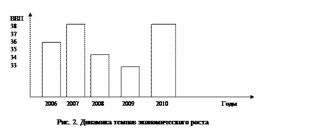 На основе рис.2 мы наглядно видим, что рост был в 2007 г.и в 2010 г. В 2008-2009 гг. наблюдался спад в экономике. Поэтому роста не было, а было его падение. Затем в 2010 г. опять спад сменился ростом.