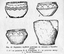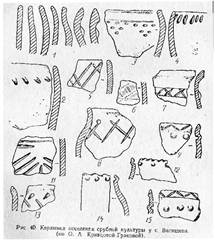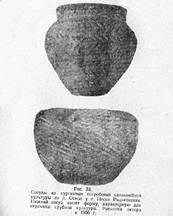 На всех этих поселениях найден типичный для второго этапа развития срубной культуры керамический материал.