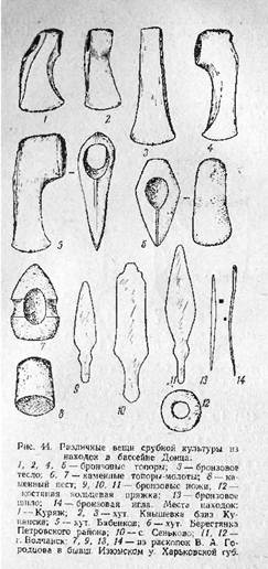 Бассейн Донца племена срубной культуры заняли по-видимому, уже в средине II тысячелетия до н. э. и обитали здесь до первой половины VII в., когда на основе срубной культуры в степях Северного Причерноморья стала складываться скифская культура.