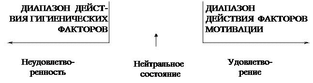 В то же время, наличие этих факторов, т. е. когда они соответствуют потребностям человека, не вызывает роста удовлетворенности трудом и мотивация трудового поведения не усиливается (движение по шкале от неудовлетворенности к нейтральному положению).