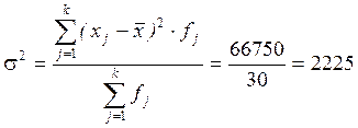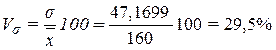 Значение Vσ = 29,5% не превышает 33%, следовательно, вариация кредитных вложений в исследуемой совокупности банков незначительна и совокупность по данному признаку качественно однородна. Расхождение между значениями