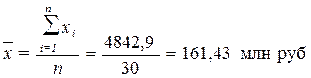 Причина расхождения средних величин, рассчитанных по формулам (8) и (5), заключается в том, что по формуле (8) средняя определяется по фактическим значениям исследуемого признака для всех 30-ти банков, а по формуле (5) средняя вычисляется для интервального ряда, когда в качестве значений признака берутся середины интервалов