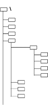 Каталоги MS-DOS образуют иерархическую структуру, называемую деревомкаталогов, подобную перевернутому дереву, в котором главный каталог образует "корень" дерева (отсюда второе название главного каталога – "корневой"), а остальные каталоги подобны ветвям.