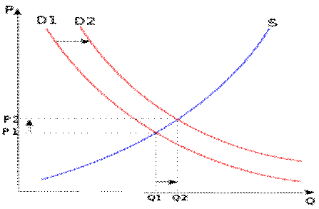 Поиск «точки равновесия»: изменение цены (P) и количества товара (Q) как следствие изменения спроса (D) и предложения (S).