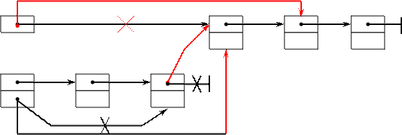Удаление из стека или очереди (при условии, что список не пуст, т.е. Head≠NIL )