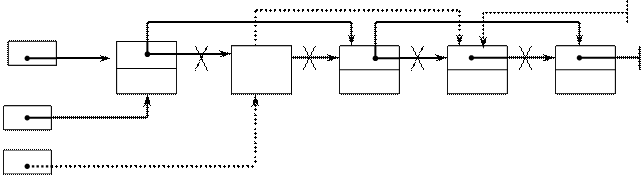 Схематически начальное расщепление последовательности S на списки a и b можно изобразить следующим образом. Ниже приведен алгоритм расщепление на псевдокоде при условии, что список S не пуст.