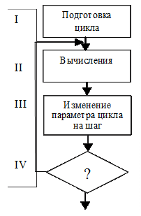 I Подготовка цикла: на этом этапе задается начальное значение параметра цикла и всех других переменных. (Параметр цикла – это переменная, изменяющаяся от начального значения до конечного с заданным шагом).