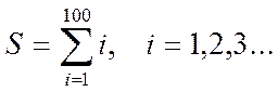 Пример 5.3: Найти сумму ста первых элементов натурального ряда чисел: