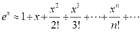 Пример 5.6: Вычислить приближенное значение функции ех, заданной разложением в ряд Тейлора, с точностью e.