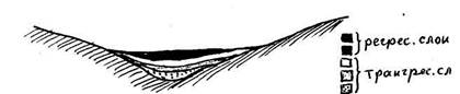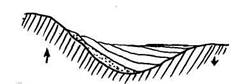 Т.е. в одном из крыльев прогиба наблюдается опускание и трансгрессивное залегание слоев, в другом - поднятие и регрессивное залегание.