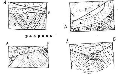 При угловом несогласии поверхность несогласия обычно хорошо видна как на картах, так и на вертикальных разрезах. Величина углового несогласия колеблется в широких пределах -О - 180° и резко изменяется в разных участках.