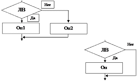 if ЛВ then Оп1 else Оп2;: Этому оператору соответствует такой фрагмент БСА: