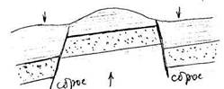 Грабены - структуры, образованные сбросами или взбросами, центральные части которых опущены и сложены на поверхности более молодыми породами, чем породы в приподнятых краевых частях.