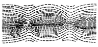 | Рис.. Будинаж в слоях с постепенным изменением пластичности от будин к вмещающей породе. | Рис.. Схема внутренней деформации будины при неоднородном ламинарном скольжении. |