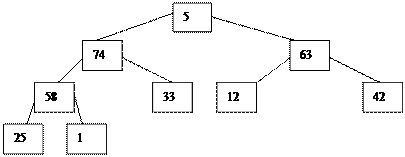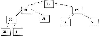 Дерево на рис.7 не является пирамидой, но левое и правое поддерево — пирамиды. Для того, чтобы это дерево перестроить в пирамиду, достаточно значение из корня дерева «опустить вниз» меняя его местами с сыном, имеющим наибольшее значение. Обмен производить до тех пор, пока есть сын, больший, чем элемент в корне. При перестроении дерева на рис.7 в пирамиду на рис.8 корневой элемент опускается на седьмой, а третий и седьмой поднимаются соответственно на первый и третий. Пирамида построена и теперь корень можно поменять с последним элементом дерева и в дальнейшем его не обрабатывать. Для полной сортировки процесс повторяется, пока в дереве количество вершин больше одного.