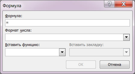 3. Записать в соответствующем поле диалогового окна формулу, введя ее с клавиатуры или вставив необходимую функцию из списка Вставить функцию.