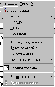 Рис. 2. Раскрытое меню «Данные»