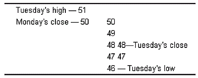 Предположим, ваша акция в понедельник закрылась на 50. Во вторник она открылась на 50, поднялась до 51 7/8, упала до 45 и закрылась на 48.
