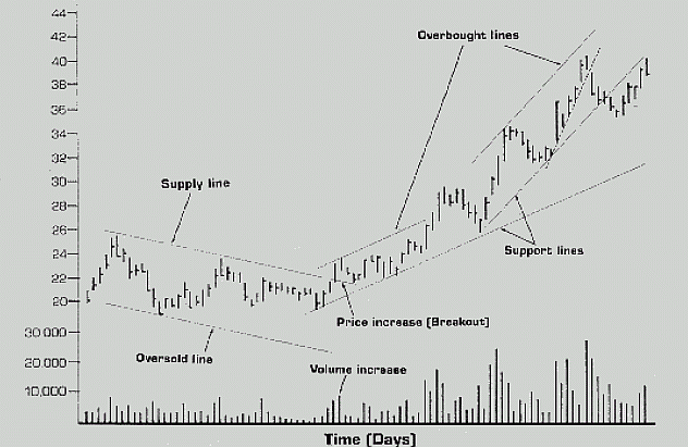 Линии поддержки и перепроданной позиции приводят трейдера в готовность покупать или покрывать, в то время как линии предложения и перекупленной позиции указывают, что пришло время продажи или входа в короткую.
