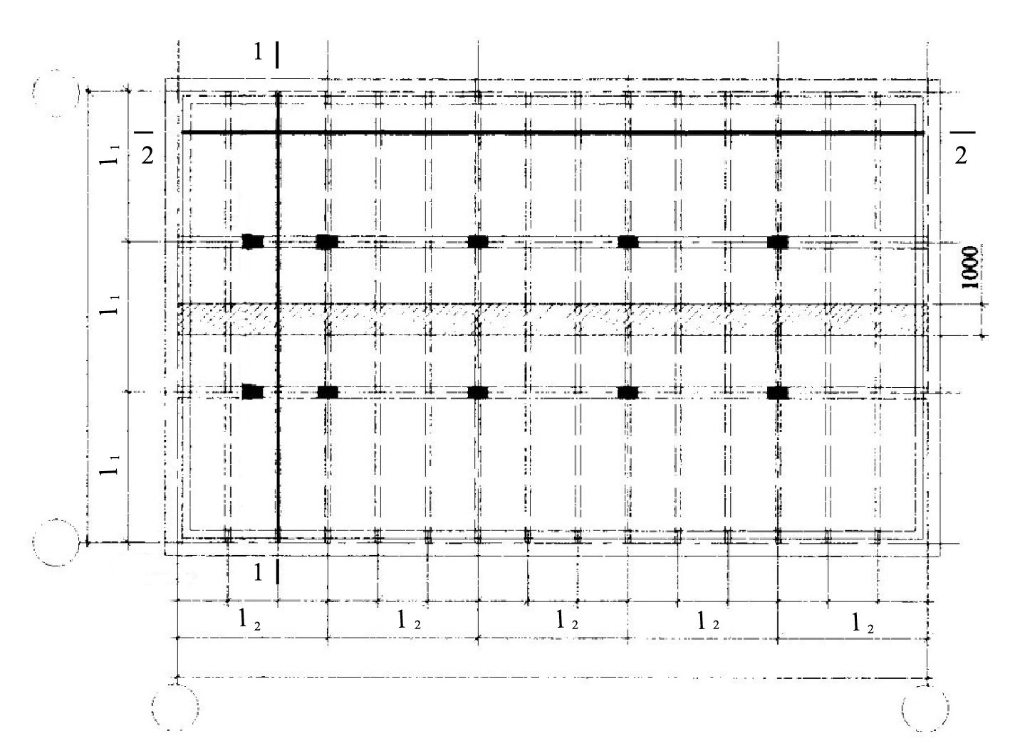 на пересечении 2-й и 3-й цифр – пролеты l1х l2 в м.