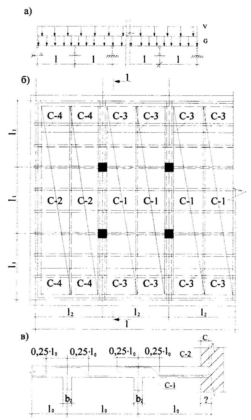 Монолитная плита, сопряженная с балами, при отношении пролетов второстепенной балки и плиты