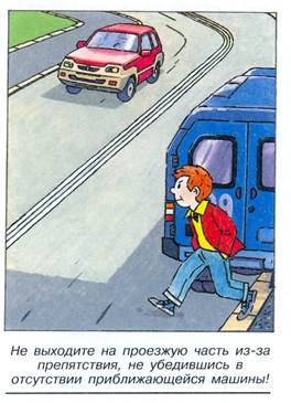 Не выходите на проезжую часть из-за препятствия, не убедившись в отсутствии приближающейся машины!