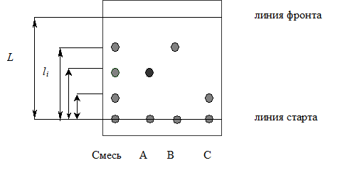 где l – расстояние от линии старта до центра пятна компонента, см;