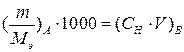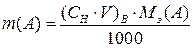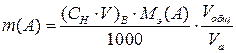Метод отдельных навесок. При титриметрическом определении этим методом навеску вещества растворяют в небольшом произвольном объеме растворителя и проводят титрование всего раствора. Зная объем, V (В), и нормальную концентрацию рабочего раствора, СН (В), израсходованного на реакцию взаимодействия с определяемым веществом, можно определить содержание определяемого компонента m( A) по формуле:
