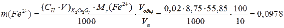 находим фактор эквивалентности f (Fe2+) = 1 и вычисляем молярную массу эквивалента железа: