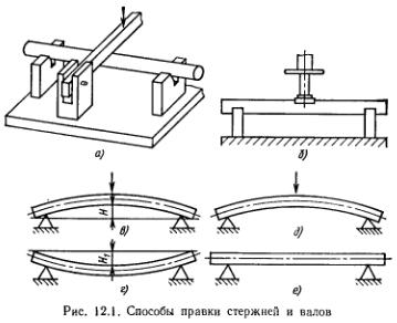 | Слесарная операция Вал укладывают в призмы выпуклостью в верх, и выправляю с помощью ручного приспособления или винтового пресса | |