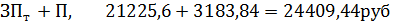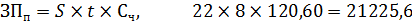 задача № 4. Рассчитать заработную плату рабочего – повременщика, если он отработал в отчётном месяце 22 смены по 8 часов. Часовая тарифная ставка рабочего 120,60 руб., За выполнение плана ему начислена премия в размере 15% тарифной заработной платы.